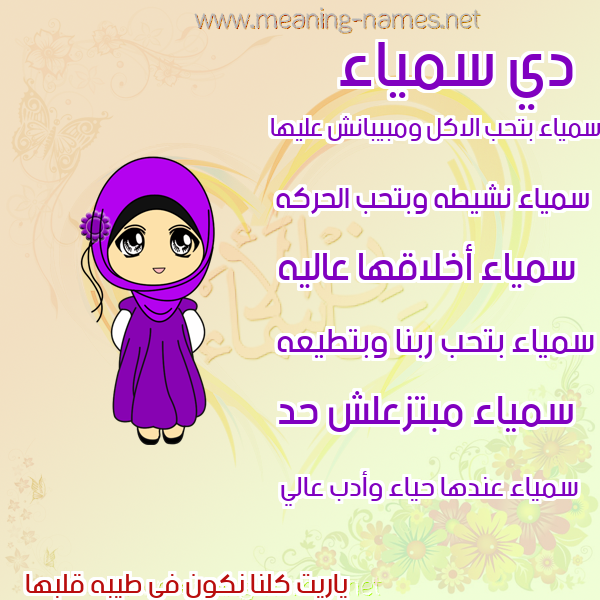 ما معنى اسمي سمياء ؟ sldhx ? what the meaning of Samiaa معاني كلمة سمياء قاموس الأسماء و المعاني و الكلمات .