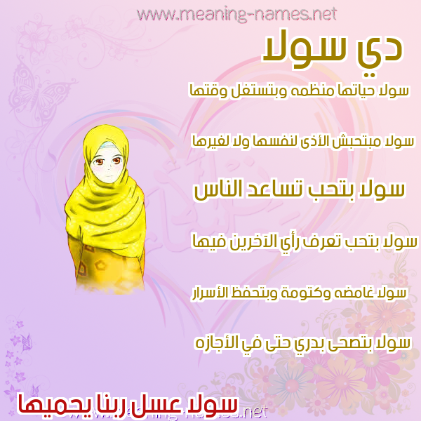 ما معنى اسمي سولا ؟ s,gh ? what the meaning of solla معاني كلمة سولا قاموس الأسماء و المعاني و الكلمات .
