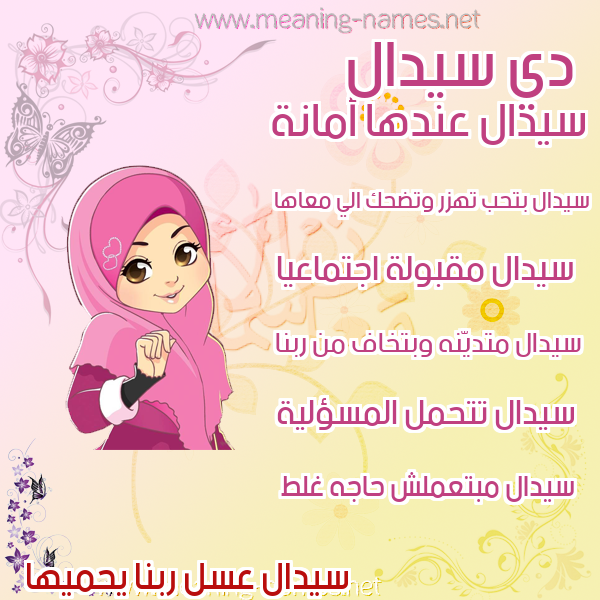 ما معنى اسمي سيدال ؟ sd]hg ? what the meaning of Sedal معاني كلمة سيدال قاموس الأسماء و المعاني و الكلمات .