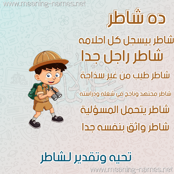 ما معنى اسمي شاطر ؟ ah'v ? what the meaning of Shatr معاني كلمة شاطر قاموس الأسماء و المعاني و الكلمات .