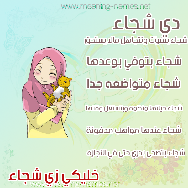 صور اسم شجاء في قاموس المعاني و الأسماء