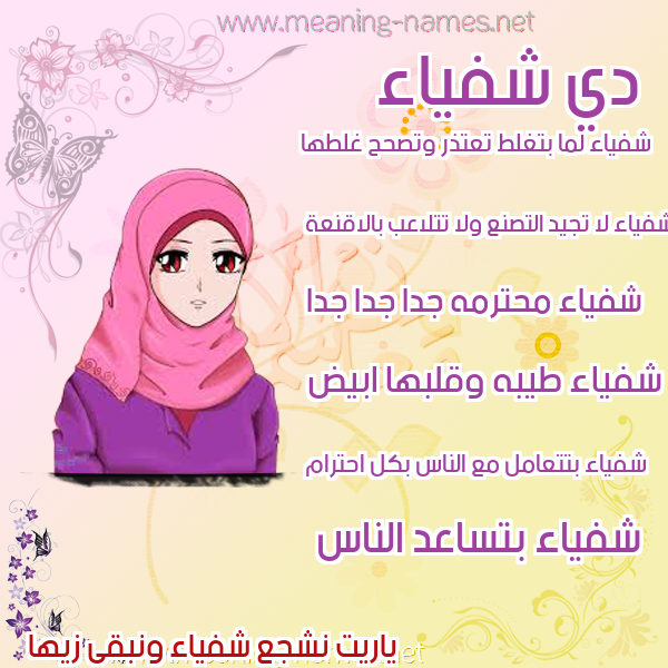 صور اسم شفياء في قاموس المعاني و الأسماء