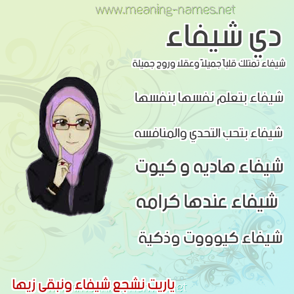 ما معنى اسمي شيفاء ؟ adthx ? what the meaning of Shifaa معاني كلمة شيفاء قاموس الأسماء و المعاني و الكلمات .