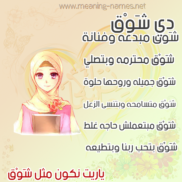 صور اسم شَوْق في قاموس المعاني و الأسماء