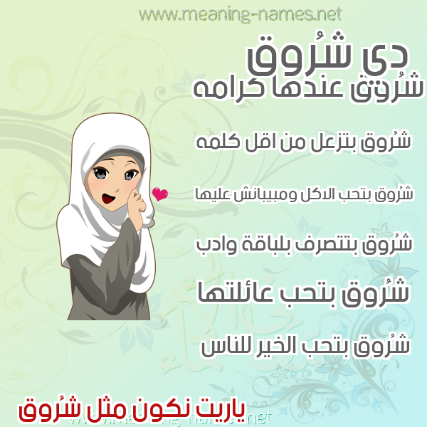 صور اسم شُروق في قاموس المعاني و الأسماء