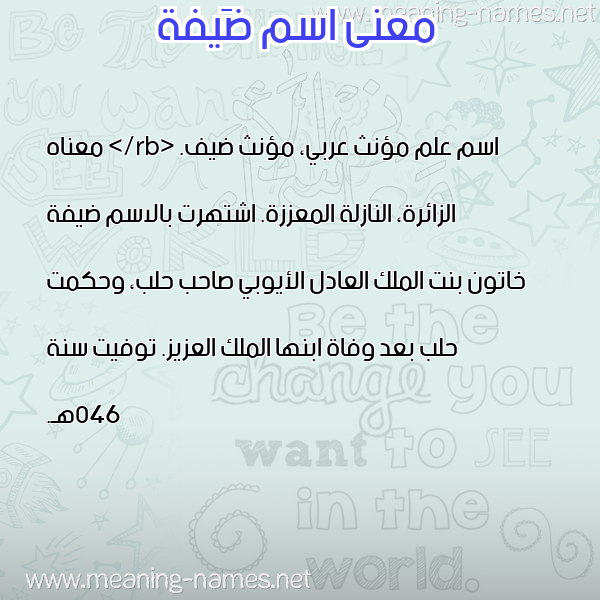 ما معنى اسمي ضَيفة ؟ qQdtm ? what the meaning of DAIFH معاني كلمة ضَيفة قاموس الأسماء و المعاني و الكلمات .