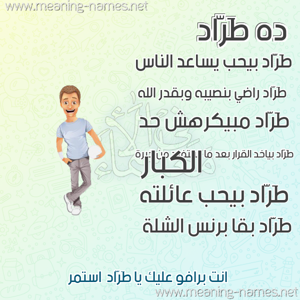 ما معنى اسمي طَرّاد ؟ 'Qv~h] ? what the meaning of TARAD معاني كلمة طَرّاد قاموس الأسماء و المعاني و الكلمات .