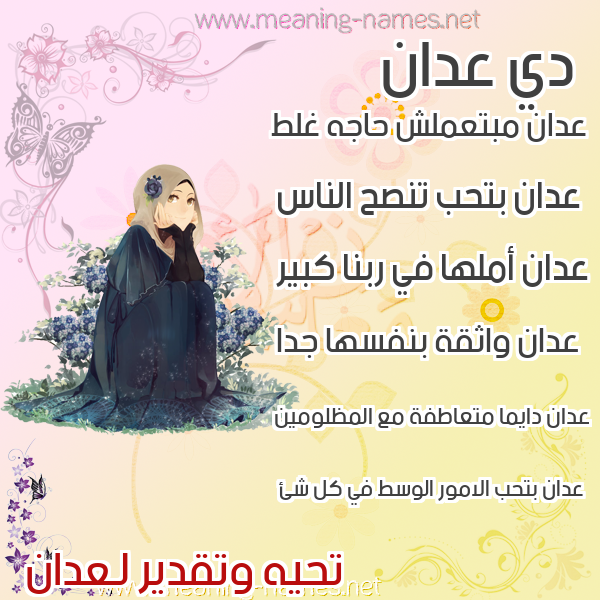 صور اسم عدان في قاموس المعاني و الأسماء