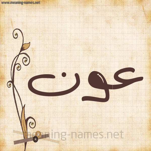 ال، الخادم ، الغوث ، الظهير على الأمر ، والعبادات .و مساعدةو معنى الاسم عون : مساعدة، و- ظهر مساند، (و- اسم صحابي: عون بن جعفر بن أبي طالب، و- اسم لأمير الحيرة وابن المنذر بن النعمان: عون بن المنذر، و- اسم خطيب ورواق أموي: عون بن عبيد الله).