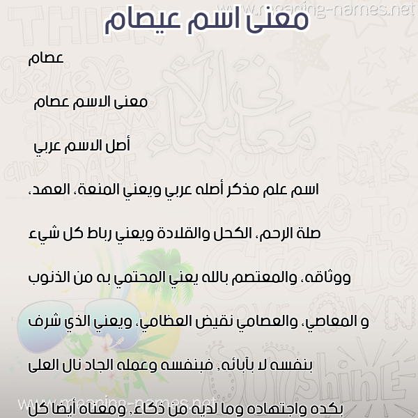 صور اسم عيصام في قاموس المعاني و الأسماء