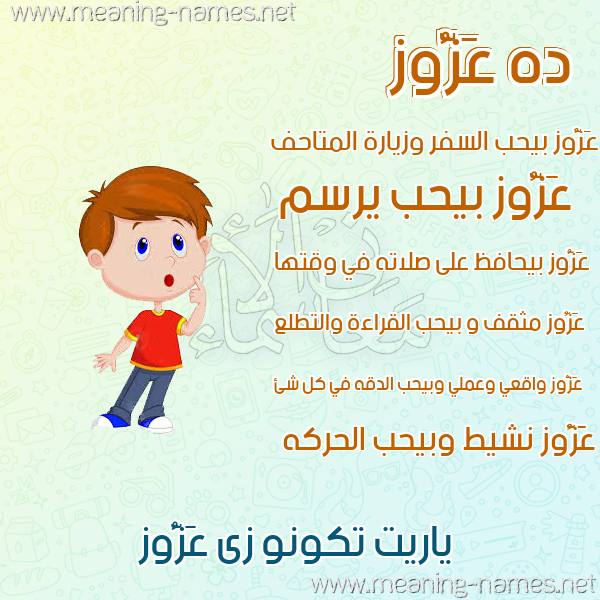 صور اسم عَزُّوز في قاموس المعاني و الأسماء