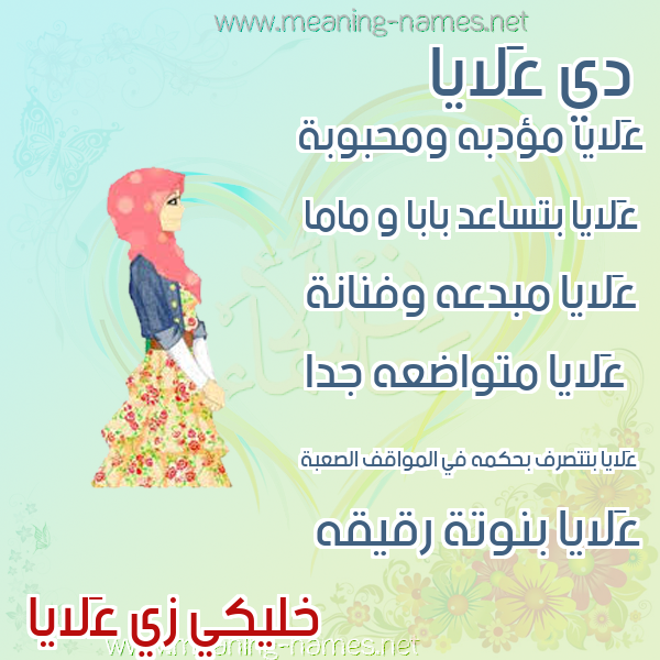 صور اسم عَلايا في قاموس المعاني و الأسماء
