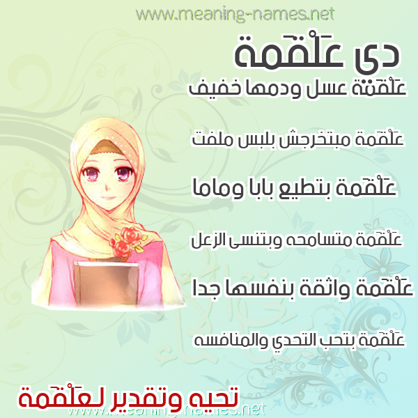 صور اسم عَلْقَمة في قاموس المعاني و الأسماء
