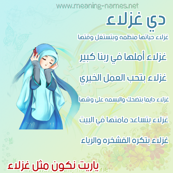 صور اسم غزلاء في قاموس المعاني و الأسماء