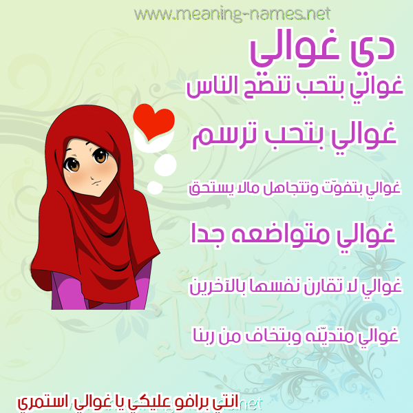 معاني الأسماء على صورة صورة اسم غوالي Ghwaly