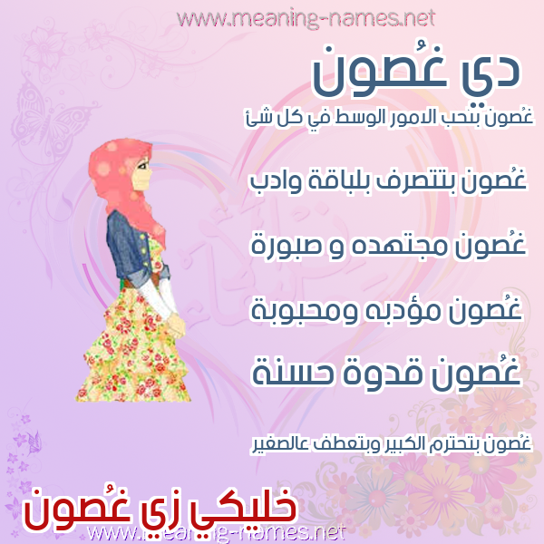 ما معنى اسمي غُصون ؟ yEw,k ? what the meaning of GHOSON معاني كلمة غُصون قاموس الأسماء و المعاني و الكلمات .