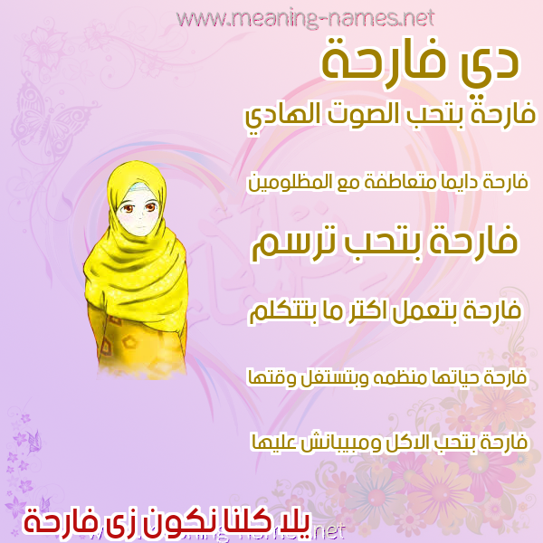 ما معنى اسمي فارحة ؟ thvpm ? what the meaning of FARHH معاني كلمة فارحة قاموس الأسماء و المعاني و الكلمات .