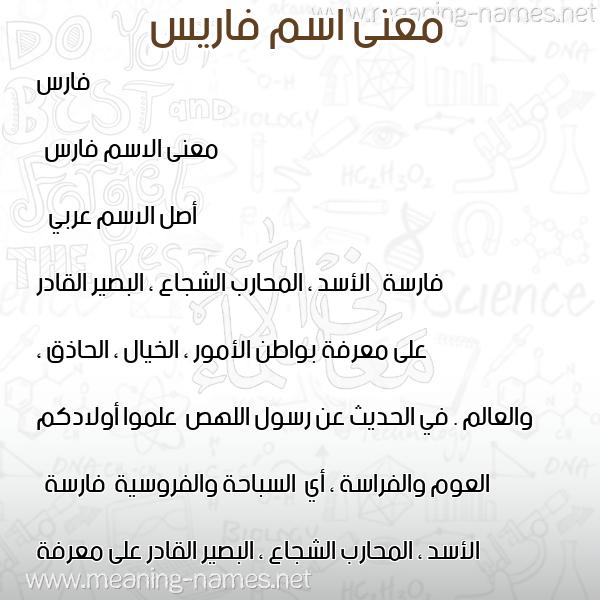 ما معنى اسمي فاريس ؟ thvds ? what the meaning of Faris معاني كلمة فاريس قاموس الأسماء و المعاني و الكلمات .