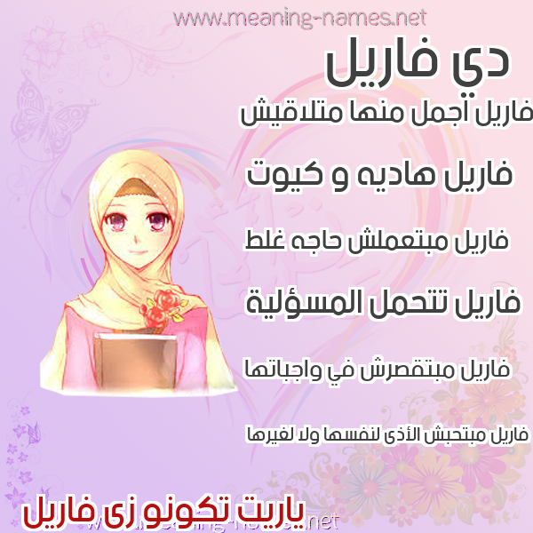 ما معنى اسمي فاريل ؟ thvdg ? what the meaning of fariel معاني كلمة فاريل قاموس الأسماء و المعاني و الكلمات .