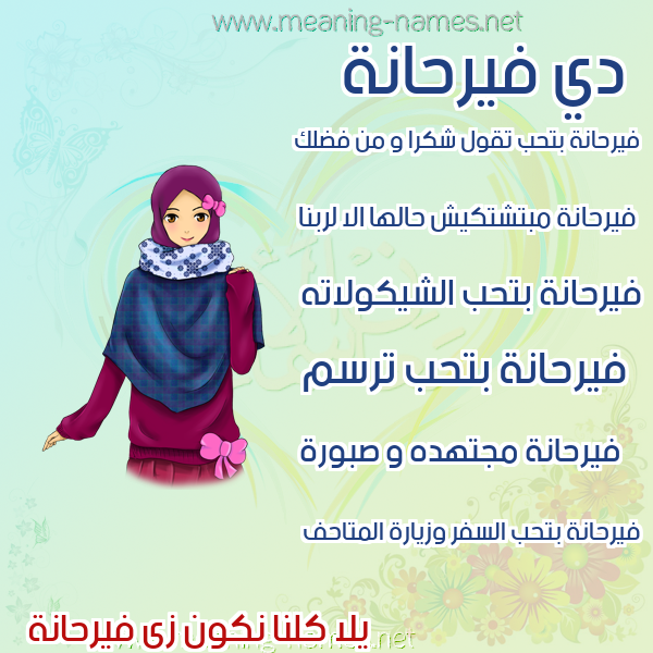 صور اسم فيرحانة في قاموس المعاني و الأسماء