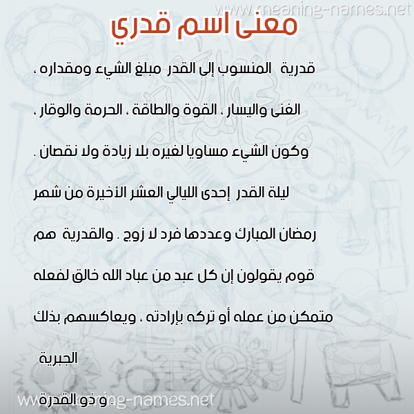 ما معنى اسمي قدري ؟ r]vd ? what the meaning of Qdry معاني كلمة قدري قاموس الأسماء و المعاني و الكلمات .
