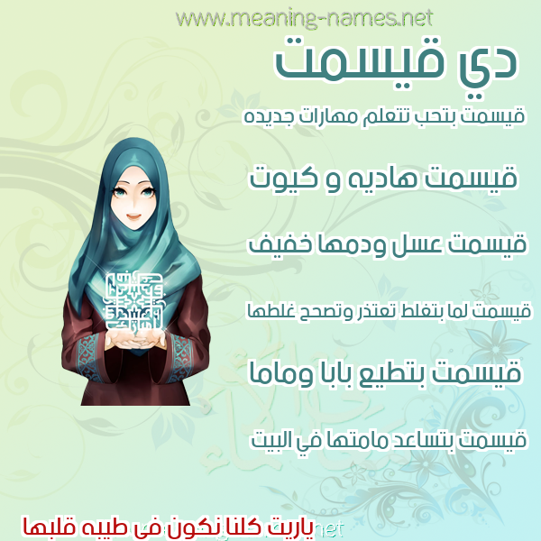 ما معنى اسمي قيسمت ؟ rdslj ? what the meaning of Qismat معاني كلمة قيسمت قاموس الأسماء و المعاني و الكلمات .