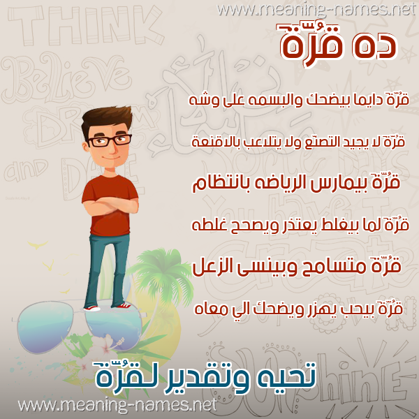 صور اسم قُرَّةَ في قاموس المعاني و الأسماء