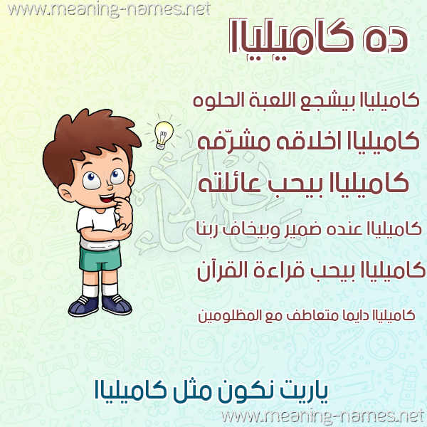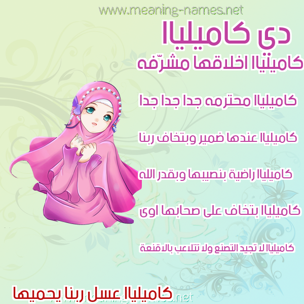 ما معنى اسمي كاميلياا ؟ ;hldgdhh ? what the meaning of kamilia معاني كلمة كاميلياا قاموس الأسماء و المعاني و الكلمات .
