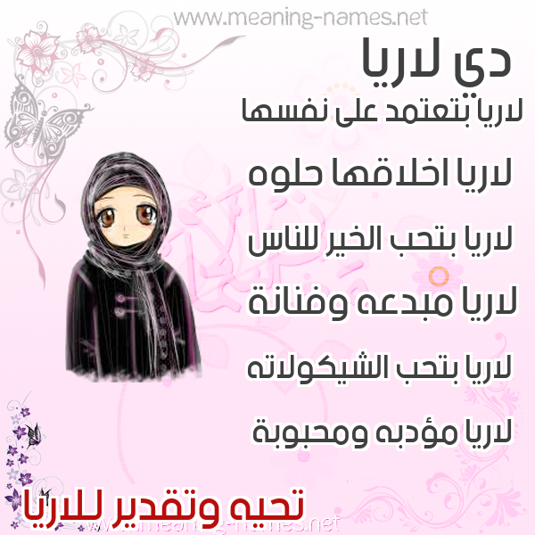 صور اسم لاريا في قاموس المعاني و الأسماء