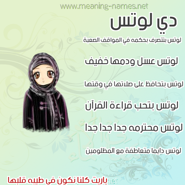 ما معنى اسمي لوتس ؟ g,js ? what the meaning of Lotus معاني كلمة لوتس قاموس الأسماء و المعاني و الكلمات .