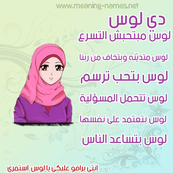 ما معنى اسمي لوس ؟ g,s ? what the meaning of loos معاني كلمة لوس قاموس الأسماء و المعاني و الكلمات .