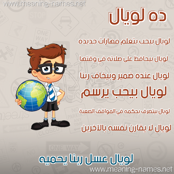 لويالمعنى الاسم لويالأصل الاسم إنجليزياسم إنجليزي يطلق على الذكور، ويعني المؤمن أو غير المنحرف والذي يسير في طريق صحيح، وكذلك يعني الوفي والمخلص. وصاحب اسم لويال يتميز بشخصيته الهادئة والمهذبة، كما أنه متقن لعمله وصاحب طابع جاد إلى حد كبير.