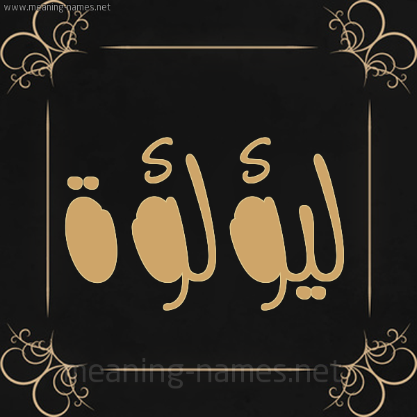 شكل 14 الإسم على خلفية سوداء واطار برواز ذهبي  صورة اسم ليؤلؤة Lulowa