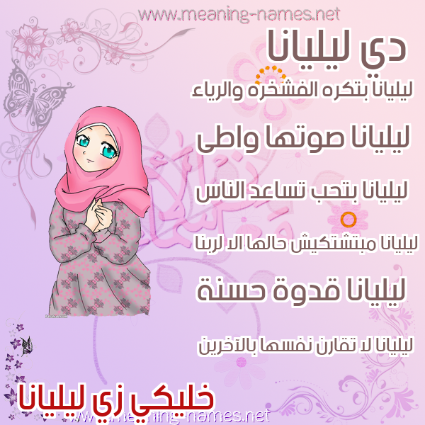 صور اسم ليليانا في قاموس المعاني و الأسماء