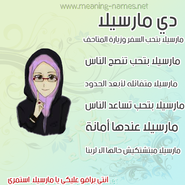 ما معنى اسمي مارسيلا ؟ lhvsdgh ? what the meaning of ,arsilla معاني كلمة مارسيلا قاموس الأسماء و المعاني و الكلمات .