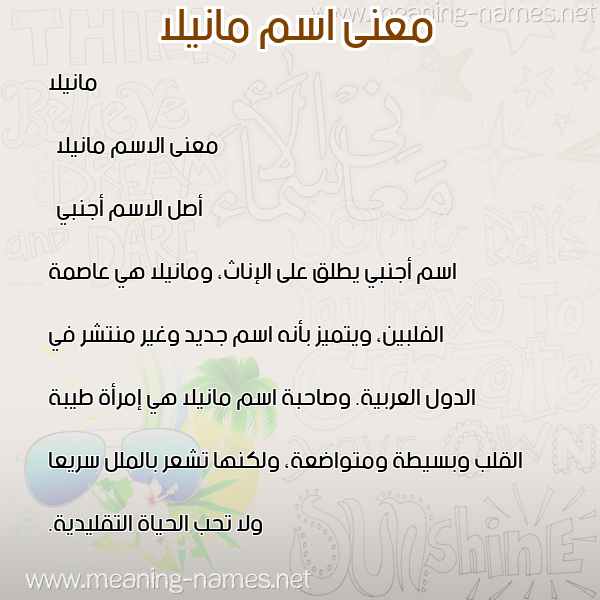 صور اسم مانيلا في قاموس المعاني و الأسماء