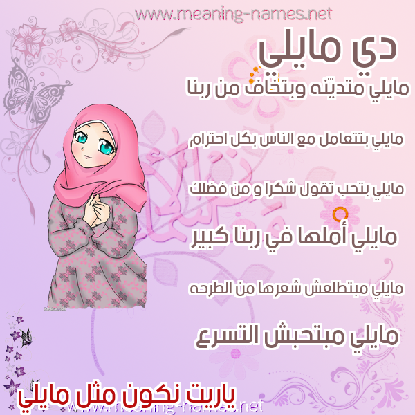ما معنى اسمي مايلي ؟ lhdgd ? what the meaning of maily معاني كلمة مايلي قاموس الأسماء و المعاني و الكلمات .