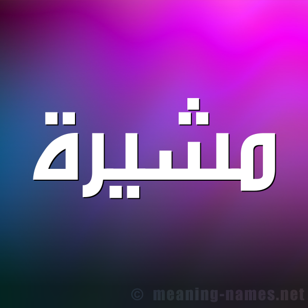 ( مُشِيْرَة ) : الناصح ، المُعرِّف ، الذي يُبيِّن وجه الصواب ، المومئ بالعين أو باليد أو بالحاجب ، رتبة سياسية وعسكرية تعادل مارشال ، ومُشِيْرَة : مؤنث مُشِيْر ، والسبَّابة ""الإصبع التي تلي الإبهام""، ويُقال : شَارَ الرجل، أي : حَسُنَ وجهه ، وامرأة شَيِّرَة ، أي : امرأة حسناء .و ناصحة، صاحبة رأي