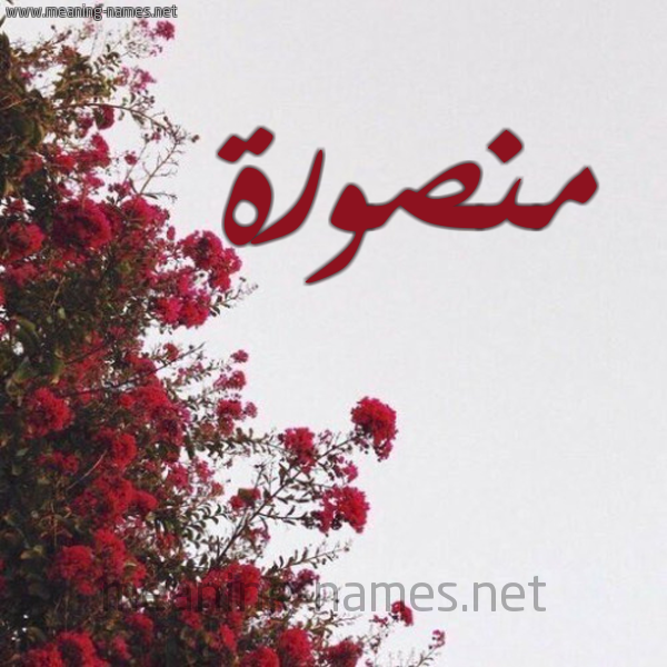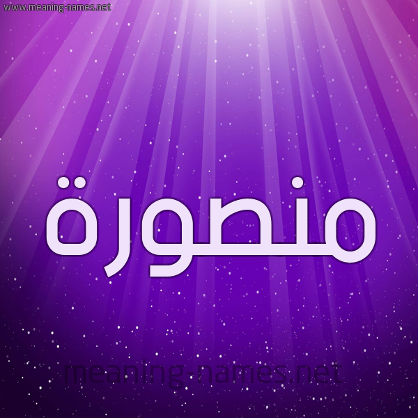 ( مَنْصُوْرَة ) : الظافر ، المُؤَيَّد ، المطر ، ومَنْصُوْرَة : الأرض التي أصابها المطر ، ومدينة مصرية . أبو منصور رشيد الدين المشهور بابن الصوري نسبة إلى مدينة صور التي ولد فيها سنة 1177 وتوفي 1241م : طبيب وعالم بالنبات تنقّل بين القدس والقاهرة ودمشق ، وعيّنه الملك الناصر رئيساً للأطباء ، كان يستصحب معه رساماً مزوداً بالأصبغة والألوان لرسم النبات في مراحل نباته ونموه ونضوجه وظهور بذوره واكتماله ثمَّ ذبوله ومواته ، ويطلب من الرسام رسمه في كلِّ مراحله مع رسم عدد أوراقه وثماره ولونه الطبيعي ، وقد تفرّد بطريقته هذه وسبق علماء النبات المحدثين بها ، ومن آثاره : الكافي في طب العيون ، كتاب النبات ، وكتاب الأدوية المفردةو امل يتمناه الابوان ان تكونى دائما منصورة على عدوك مؤيدة بعون الله ناجية ممن عاداهو معنى الاسم منصورة : منتصرة، غالبة.