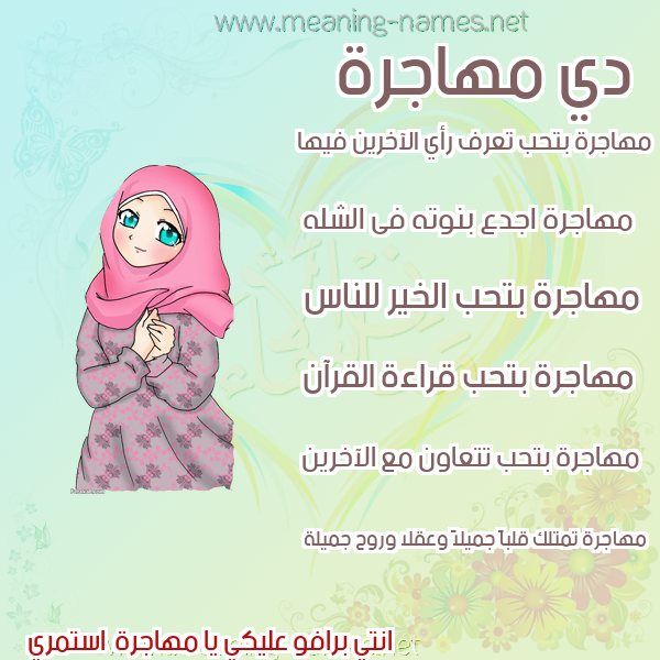صور اسم مهاجرة في قاموس المعاني و الأسماء