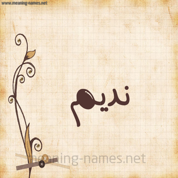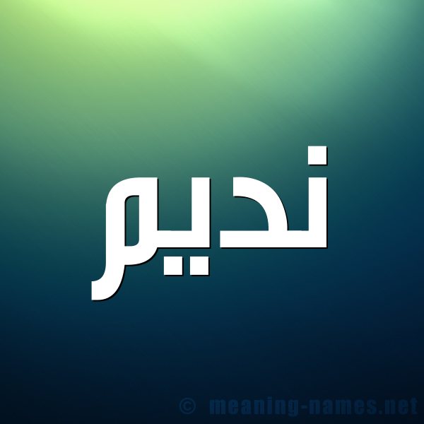 ( نَدِيْمَة ) : الجليس الذي يُحسِن الحديث والتصرف ، المُصاحب على الشراب ، والخليل . ابن النديم ( ت. 1047م ) : أديب ومؤلف موسوعي عربي ولد في بغداد واشتهر بكتابه الشهير ""الفهرست""، الذي جمع فيه أسماء الكتب العربية وأصحابها مع معلومات مفصلة عنهم حتى تاريخ وفاته ، ولا يزال كتابه مرجعاً للباحثين في الثقافة العربية القديمة ، وقام رئيس الجامعة الأميركية في بيروت سابقاً بترجمة هذه الموسوعة إلى الانكليزبة في مجلدينو رفيقو معنى الاسم نديم : سمير، أنيس، جليس.