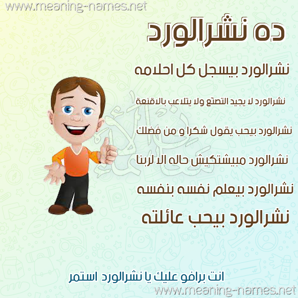 ما معنى اسمي نشرالورد ؟ kavhg,v] ? what the meaning of Nshralwrd معاني كلمة نشرالورد قاموس الأسماء و المعاني و الكلمات .