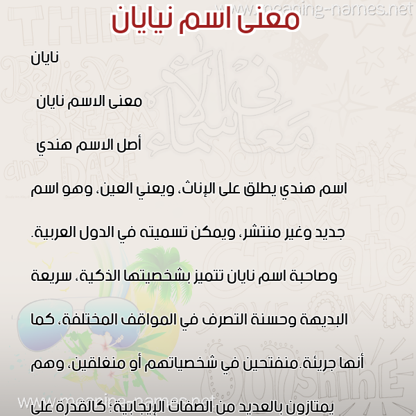 صور اسم نيايان في قاموس المعاني و الأسماء
