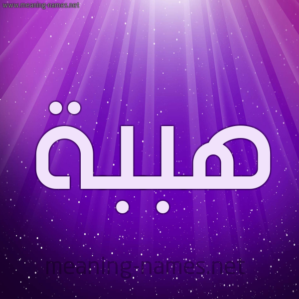 هبةمعنى الاسم هبةأصل الاسم عربياسم علم أصله عربي مؤنث، من صيغة الفعل وهبَ. ويعني العطية، الهدية، والهبة وما تعطيه من غير مطالبة بتعوض. قد يسمون به الذكور كهبة بن محمد احد أمراء بني رسول. وقد يخصص الاسم بالهبة الربانية على سبيل الحصر فيقال فيه هبة الرحمن، وهبة الله شاعر مغنّ أحد أمراء بني العباس، اسم هبة لا يعد من الأسماء كثير الإنتشار بين الذكور ولكنه لامع بين الإناث في معظم الدول العربية حيث الكثير من الأباء والأمهات يحبون تسمية بناتهم بهذا الأسم سهل اللفظ عميق المعنى.
