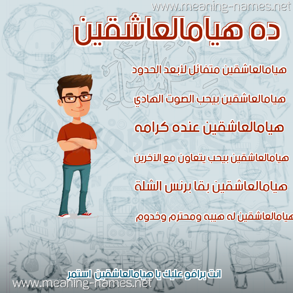 ما معنى اسمي هيامالعاشقين ؟ idhlhguhardk ? what the meaning of Hyamal'ashqyn معاني كلمة هيامالعاشقين قاموس الأسماء و المعاني و الكلمات .