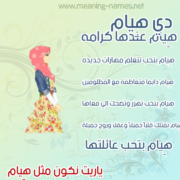 صور اسم هِيام في قاموس المعاني و الأسماء