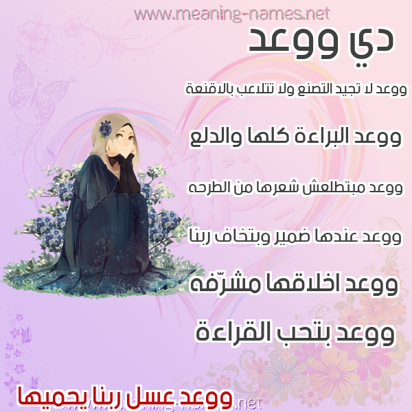 ما معنى اسمي ووعد ؟ ,,u] ? what the meaning of Wa'd معاني كلمة ووعد قاموس الأسماء و المعاني و الكلمات .