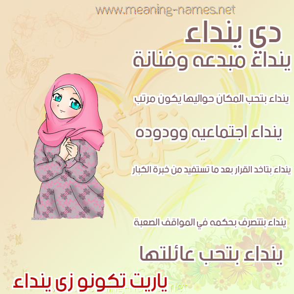 معاني الأسماء على صورة صورة اسم ينداء Nedaa