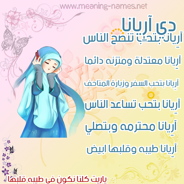 معنى اسم آرِيانا في قاموس المعاني و الأسماء