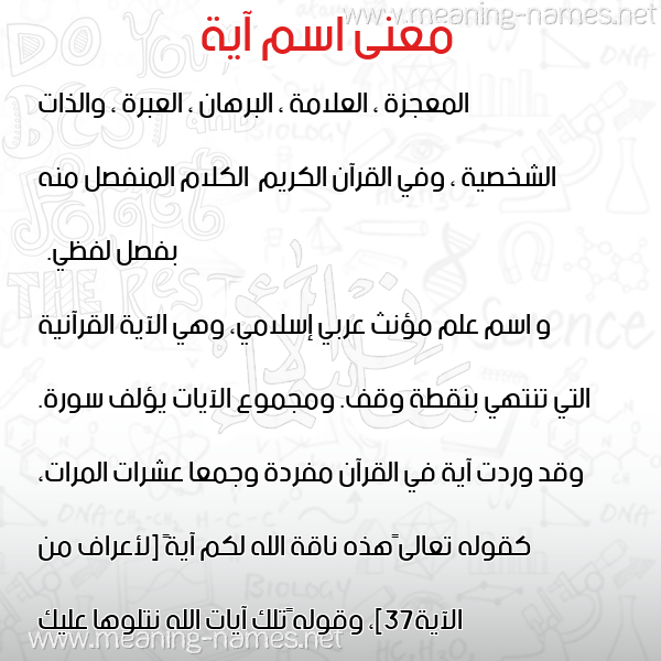 ما معنى اسمي آية ؟ Ndm ? what the meaning of Aya معاني كلمة آية قاموس الأسماء و المعاني و الكلمات .